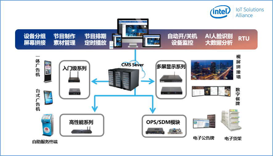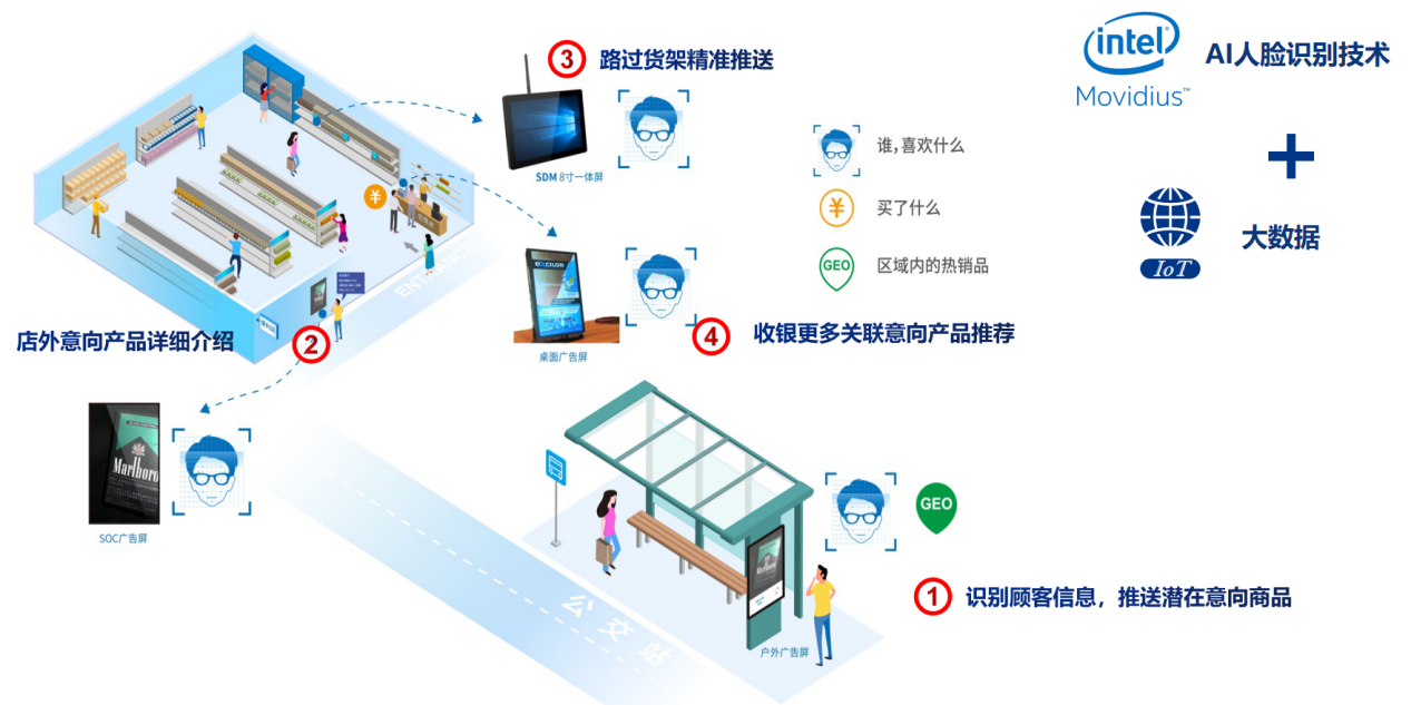为了更好的迎合产业发展的趋势,对产业输出新鲜的营销理念和模式,驱动零售业数字化、智慧化管理模式的进一步升级,永利3044官网科技集成了Intel®Movidius视觉识别技术和OpenVINOTM人工智能视觉学习技术,自主研发了永利3044官网GDSM智慧商显平台。更凭借多年硬件开发经验,形成一套完整、切实的精准营销方案,获得了Intel®MRS市场方案认证。