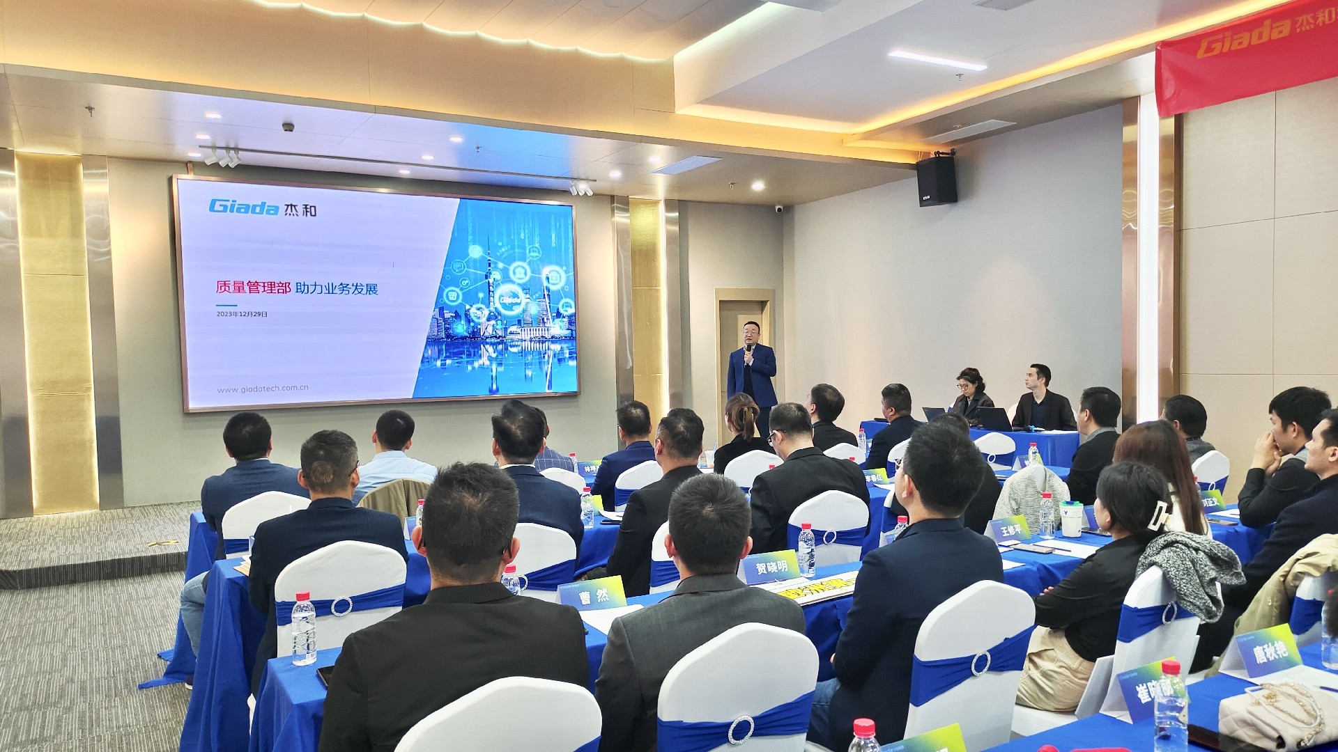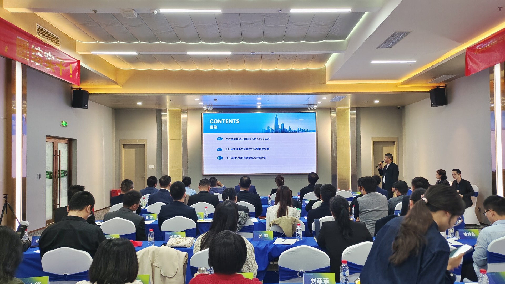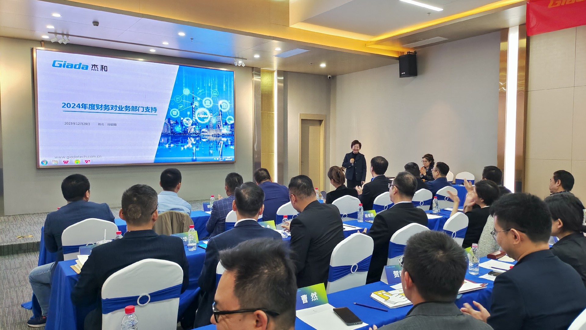 会议开始后,两位国际/国内营销中心负责人首先对2023年度经营工作作总结报告,并着重介绍2024年度销售目标与重点工作。