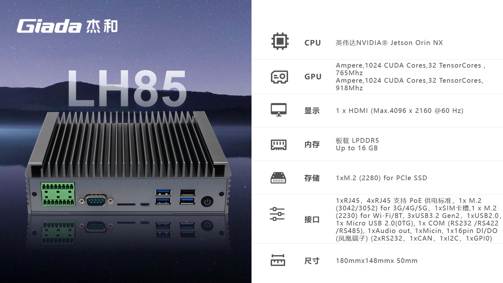 永利3044官网科技AI边缘计算LH85,拥有100TOPS超强算力,能为工业控制领域客户的AI应用提供强大的算力支持和充足的通信、控制接口保障,可广泛应用于智能制造、机器视觉、AGV、智慧城市等领域。