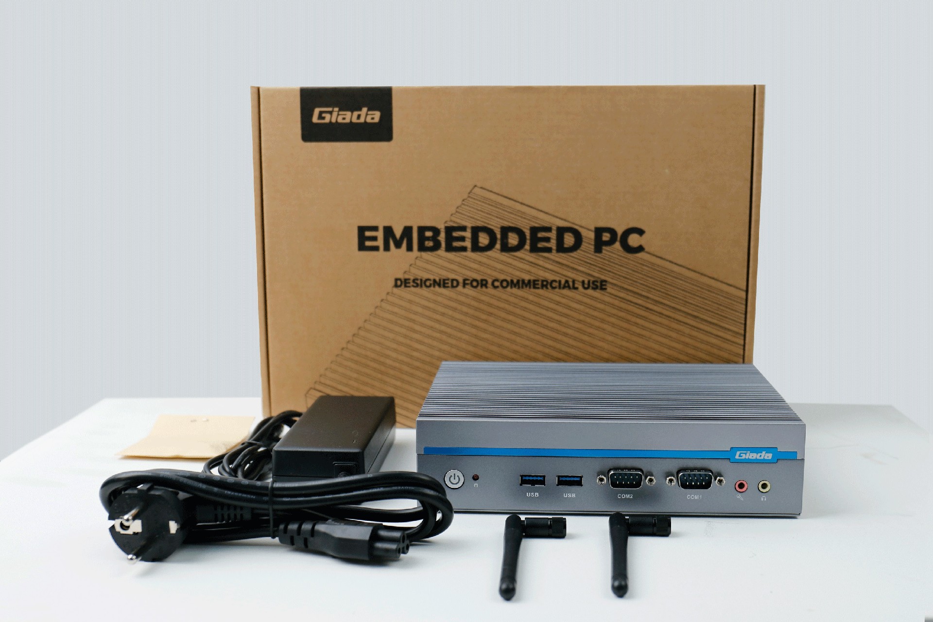 嵌入式整机AE613外包装采用环保材料设计,内部配备适配器、AC线、天线棒、螺丝包,满足通用需求,整机外观机壳顶面采用一体式铝板增高的鳍片散热设计,整机结构采用全铝设计保证散热与抗压性,通过永利3044官网特有无风扇静音散热设计使整体散热效果非常优秀,同时营造出极致安静的工作和使用环境,无噪音,更防尘。