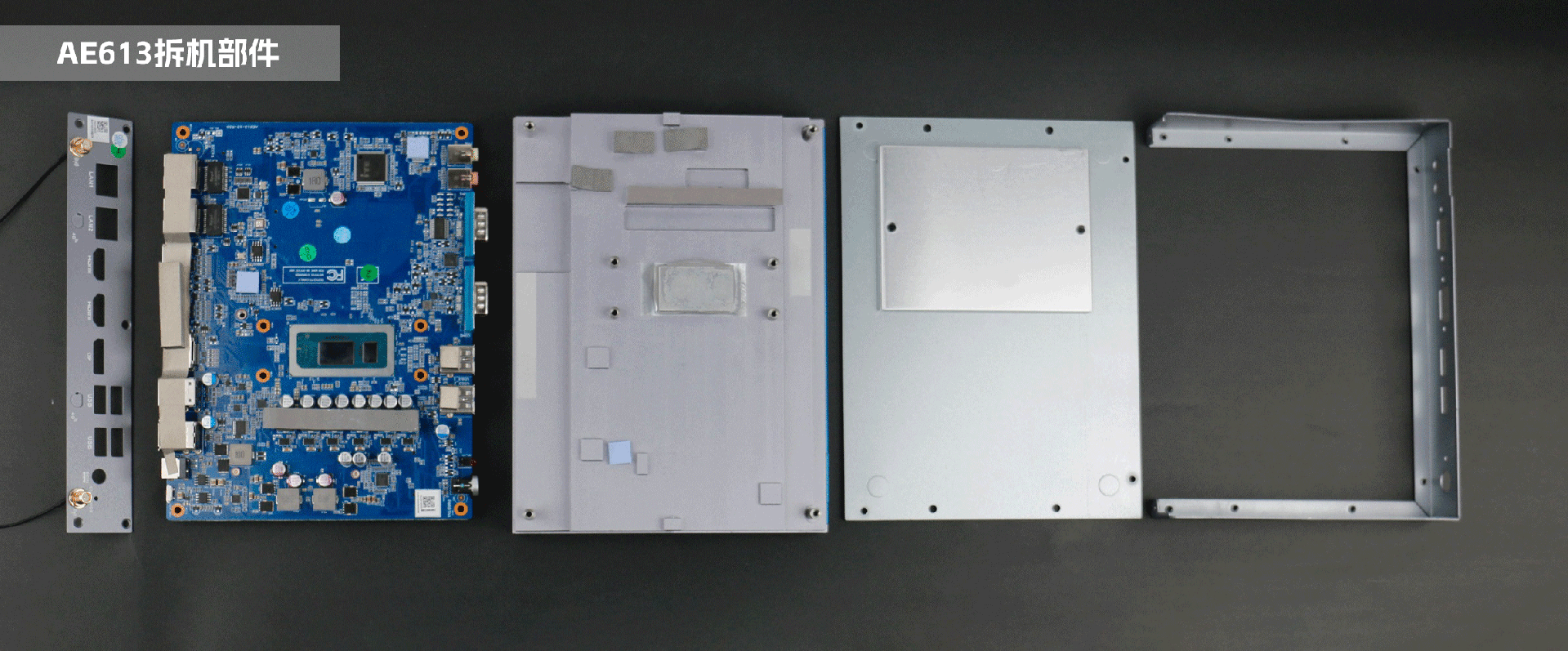 永利3044官网AE613采用密封设计,整机由上至下主要分为四个部分:鳍片顶盖、内部主板、四周边框、底盖,机壳外框与主板之间无缝衔接,采用紧凑式设计,能够更有利于导热和散热。顶盖与主板之间贴隔着导热胶与防静电泡棉,用于导热和防静电,在主板的处理器部位装备了导热板和散热膏,提高散热强度。